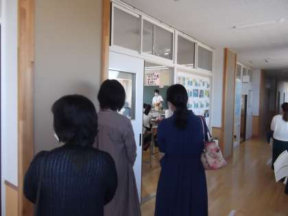 授業参観は、前半9:00〜と後半11:00〜に分け、密を避けています。また、参観は廊下からでとお願いをし、協力をいただいております。授業は、担任の教科で実施しています。