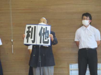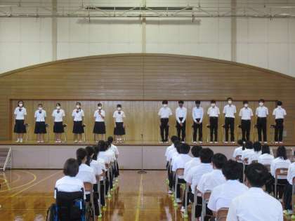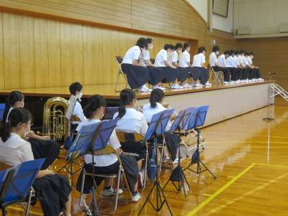 校長は「あなたたちは、本校の宝です。そして誇りです。最高に光り輝いてください。」と激励し、「いざというときに力を発揮させる秘訣は、自分のことより仲間やチームのことを先に思って行動することです。『利他の精神』を忘れず、がんばってきてほしい。」と話しました。