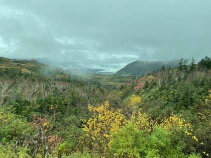 霧が強くかかった状態ですが、時折の晴れ間に素敵な景色が見られます。