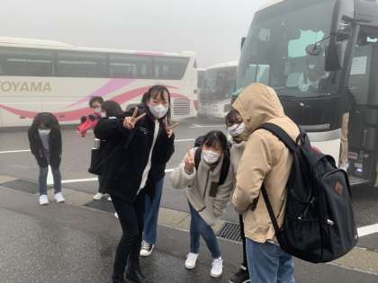 10時30分頃、室堂に到着。気温は8度。実際は、それよりまだ低く感じられますが、生徒はみな元気です。