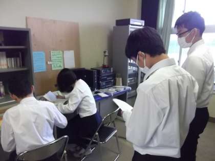 黙食が続く給食時間ですが、少しでも明るく楽しく食事をしてほしいと、今日から生徒会執行部が「大中ラジオ」を始めました。ラジオのトーク番組のような雰囲気で、今日は先生クイズが中心でした。フランクな感じで、とても楽しい時間を過ごすことができました。