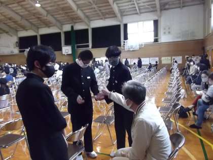 生徒のがんばりを見届けに、懐かしい先生が・・・あっという間に人だかりができました。