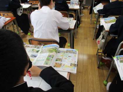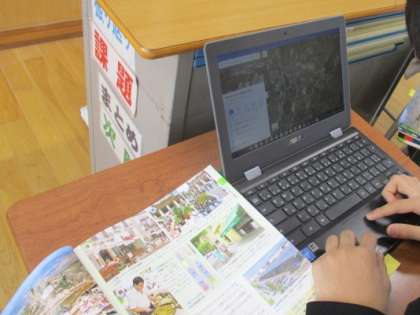 資料集とクロムブックを両方活用しながら、学びを深めています。