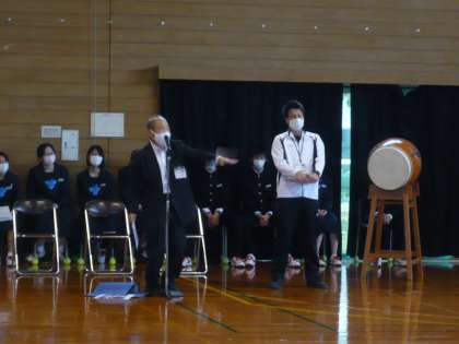 「目標に向かってたゆまない努力をすることによって、進化は突然にくる。今頑張ること、それは、今後の自分にしっかり生きてくるのです。選手の皆さんは仲間を信じ、自分を信じ、迷いのない精一杯のチャレンジをしてきてください。3年生の皆さんは、自分の人生を自分らしく全力で作りあげてください。」と、校長先生から1・2年生には新人戦、3年生には進路選択に向けて、激励のお言葉をいただきました。