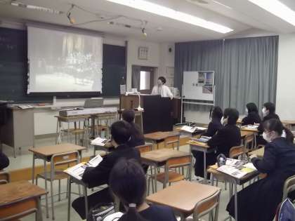 オペラ「アイーダ」の鑑賞の授業です。先日の合唱コンクールでの取り組みを織り交ぜながら、パートの確認をしています。新たに、バリトンというパートがあることを学びました。また、舞台の様子を映像で確認しましたが、舞台の上に本物の馬が登場していることにビックリしました。