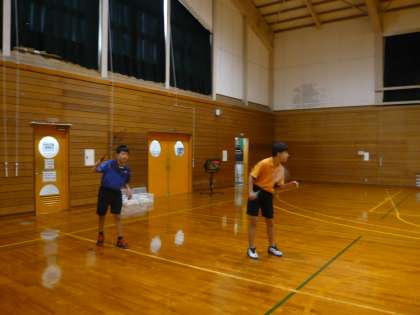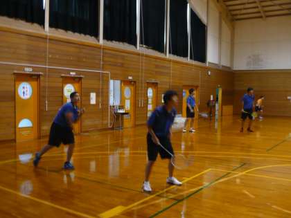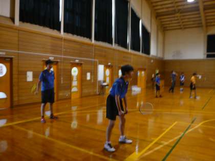 体育館では、バドミントン部が北部中学校と練習試合を行いました。