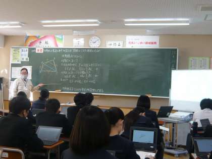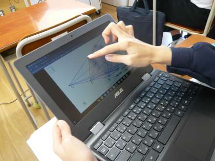 クロムブックを使って、図形の学習をしました。自分で自由に図形を動かすことができるのでとても分かりやすく、思考も深まりました。
