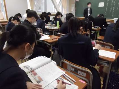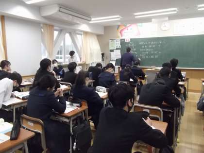 「三角形と比の定理から、新しい性質を導こう」という課題で、学習に取り組んでいます。既習事項を生かしながら、新たな性質の発見に挑戦です。