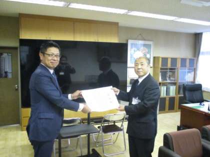 北陸銀行清水町支店長の沼田康至様が来校され、寄贈式を行いました。牧校長が代表して寄贈状を受け取りました。