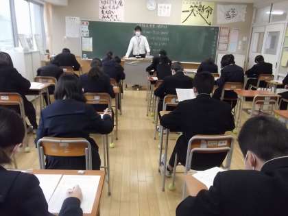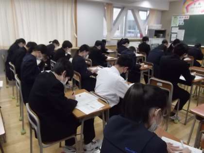 さて本校は、今日が2学期末考査の最終日を迎えています。残り3教科、大中生は集中して取り組んでいます。