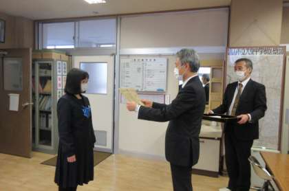 中学生の「税についての作文」に応募した、本校の2学年生徒が富山税務署長賞を受賞しました。今日は富山税務署のみなさまが来校され、校長室で授賞式を行いました。おめでとう!