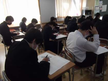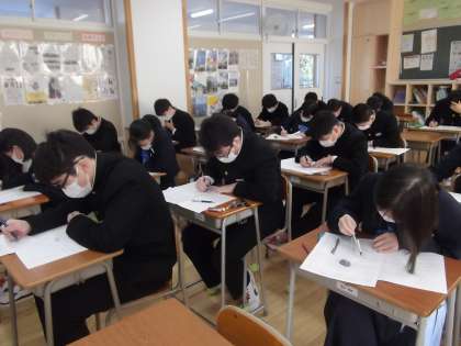昨日に引き続き、3年生は富山市学力調査に挑んでいます。今日は英語と数学です。