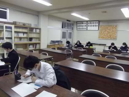 今日は人数が少なかったのですが、参加した大中生はかなり集中して自主学習に励んでいました。とある有名私立高校の、数学の入試問題(過去問)にチャレンジしていた生徒が頭を抱えたまま固まっていたので、急きょ数学の先生に応援を依頼しました。あまりにも難しい問題だったようで、数学の先生もかなり考え込んでいらっしゃいました。