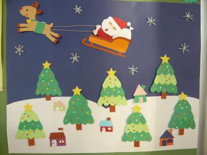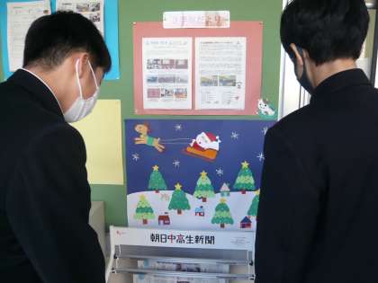 職員室前の掲示板です。助手の方が作ってくだった心温まる掲示物に、立ち止まって眺める生徒がたくさんいました。