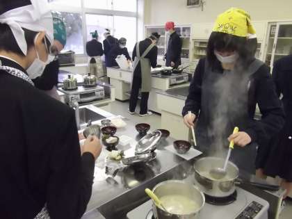 12/13(月)2年2組 調理実習の様子