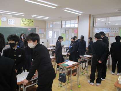 2年国語では、「自分の知識と経験を結びつけながら感想を述べ合おう」を課題に、「クモの糸でバイオリン」をもとに、感想を述べ合っています。