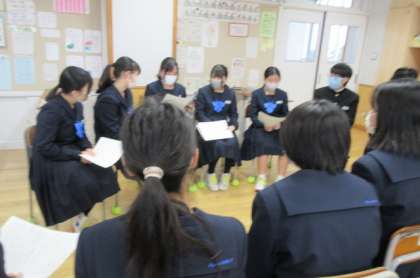 「根拠の大切さを考えて書こう」という課題で各自が書いた意見文を読み合いました。
