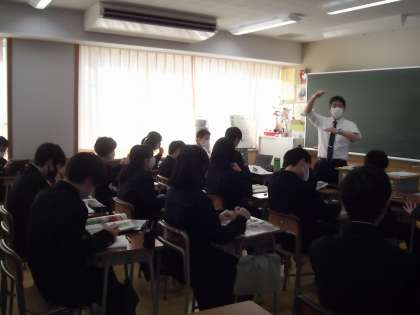 音について学習したことを、問題を通して振り返っていました。浅野教頭先生の発問一つ一つに、敏感に素早く反応し回答する1年生です。活発な授業となっていました。