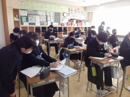 今日は、2学期最後の「教科の授業」の日でした。久しぶりの晴れ間で、令和3年の「教科の授業」を締めくくる、良い日になりました。保護者懇談会も昨日で終了し、生徒の表情は何だか晴れやかです。何故でしょうか? 3学期の土台になるよう、今日を過ごしてほしいと思います。