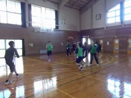 バスケットボールのミニゲームが行われていました。交代の切れ間は短いですが、スムーズに入れ替わりプレーする姿は、「さすが3年生!」でした。