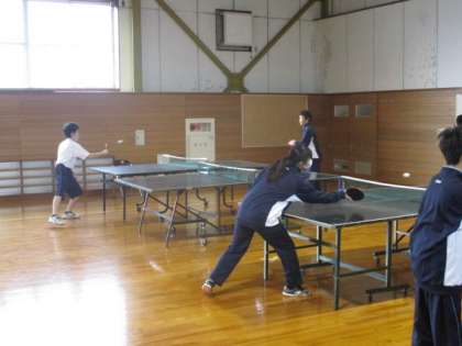 バレーボール部は、パスやアタックなどの基礎練習、卓球部は、ゲーム形式でリーグ戦を行っています。頑張ろう、大中生!!