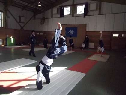武道場でマット運動にチャレンジしています。今日は、側転を中心に学習を進めました。膝が折れないように回るのがコツですが、それがなかなか難しいです。