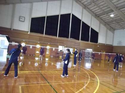 バドミントンを学んでいます。今日は、ダブルスのゲームに挑戦しています。