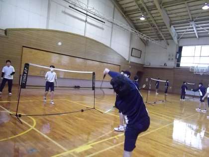 バドミントンを学んでいます。今日は、ダブルスのゲームに挑戦しています。