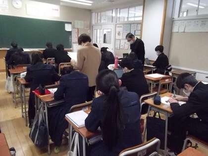 大中生は、1限目から集中力全開で授業に臨んでいます。今日はノー部活動デー、明日からの3連休は都合により部活動停止、来週月曜日から学年末考査のテスト週間 ということで、家庭学習の時間がたっぷりあります。1年間を良い形で締めくくるためにも、時間を有効に活用して、学力の向上を目指しましょう。