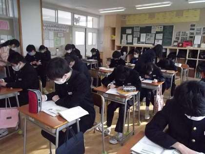「コンドルは飛んで行く」の、リコーダーの実技テストをしています。準備室に一人ずつ呼ばれて、演奏します。順番待ちの生徒の緊張感が伝わってきます。