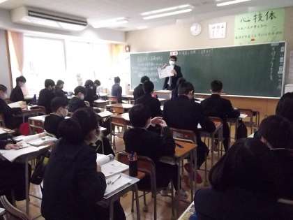 「平行と合同」のまとめ学習として、プリントの問題に取り組んでいます。証明問題はなかなか難しいですが、なかまどうしで学び合いをしたり、先生に質問したりして、積極的な学びの姿勢が見られます。