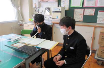 2学年は来年度の修学旅行に向けて、事前学習をしています。班別学習で働く人にインタビューをするために、自分の興味ある職種について調べ、事業所や施設に連絡を取っています。