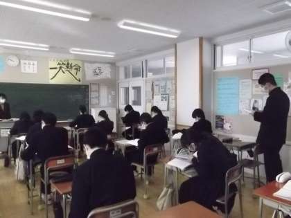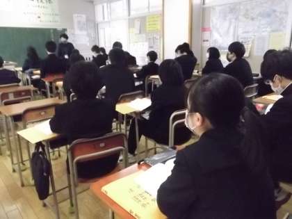気持ちの良い、晴天の朝を迎えました。学年末考査も昨日で終わり、大中生はいい意味で少し緊張感の抜けた、リラックスした状態で授業に取り組んでいます。