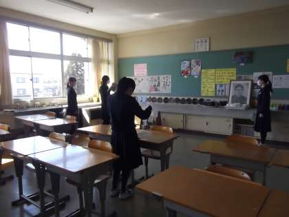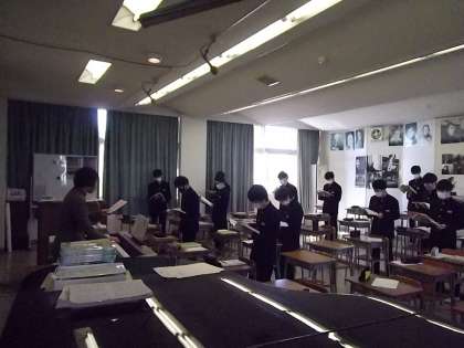 卒業式の式歌練習を、パート別に部屋を分け密にならないようにして取り組んでいます。練習の歌声を聞いたり、歌う姿勢を見たりするだけで、何だか胸が熱くなります。