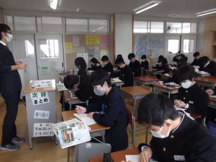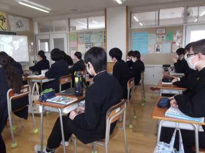 知的財産の保護と利用について、参考となるドラマを視聴することで学んでいます。比較的身近に発生しそうな事象で、みんなとても真剣に視聴しています。