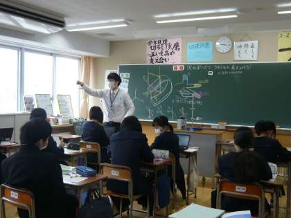 また、2年理科では、電流と磁界の関係について、演示実験を交えながら、大川先生の身振り手振りと合わせて、理解を深めています。