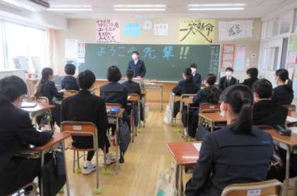 昨年度本校を卒業した高校1年生6名を講師に招き「先輩に学ぶ会」を行いました。先輩方は高校生活や進路選択についてたくさんお話をしてくださいました。生徒は真剣な表情で聞き入っており、その後、たくさん質問をしていました。今日教えていただいたことを大切にして、3年生に進級したいと思います。