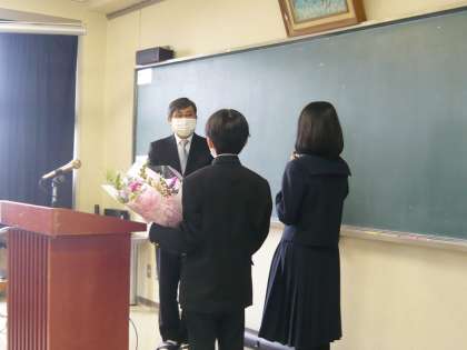 今年度4月から1年間、英語の授業を中心に本校を支えていただいた、石川先生の離任式を行いました。