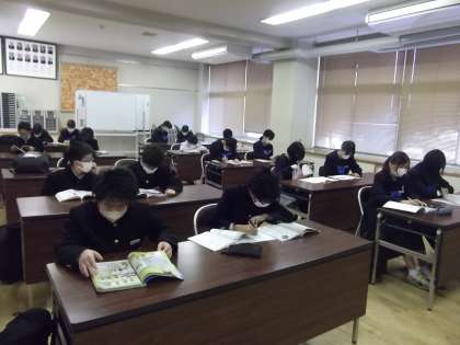 今日は、2・3年生は中教研学力調査2日目、1年生は中1学力調査1日目です。