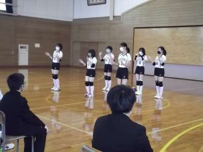 写真は上から、生徒会長挨拶・卓球部・バレーボール部の様子です。
