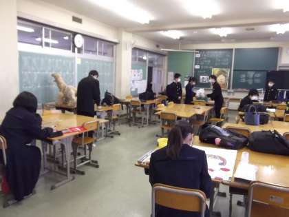 美術部は、絵画や立体作品の説明を受けたり、実際に描画したりしています。