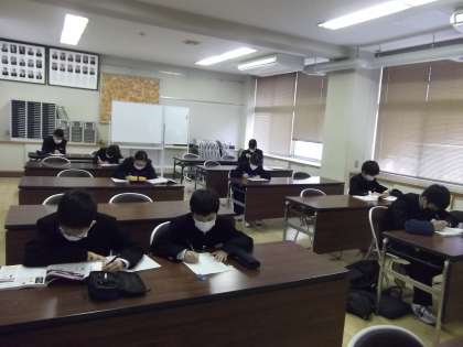 朝の寺子屋には9名の大中生が参加し、自主学習に励みました。(写真上)