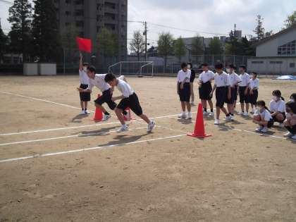 短距離走の測定をしています。今のタイムからどのくらい伸びるか、楽しみですね。