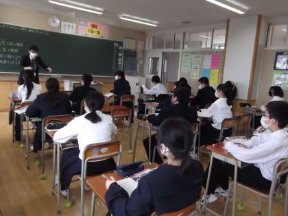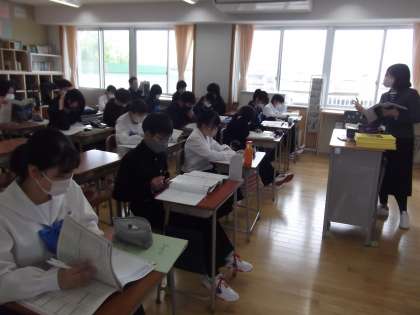 英語の「予習」について説明がありました。小学生時との共通点と相違点から、よりよい学習の仕方について学んでいます。