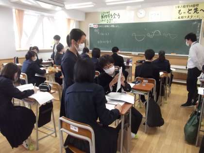 「さまざまな熱分解を見てみよう」という課題で、化学変化について学習が進められています。酸化銀の熱分解の様子を映像で確認したところ、いろんな意見が飛び交っていました。さすが2年生、昨年に引き続き反応が良いです。