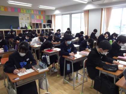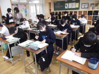 アルファベットとローマ字の学習です。ローマ字で自分の名前を表記しようとしています。中学校の英語では、聞いたり話したりすることに書くことが加わります。