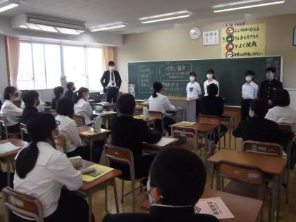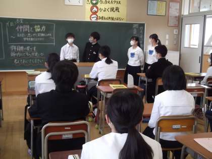 今日の朝学活の時間に、1年生は学年目標を決めていました。クラスのリーダーが前に出て、A案・B案それぞれの理由と思いを、とても分かりやすく伝えています。どちらになっても、みんなで達成させようとする姿勢につながると感じました。