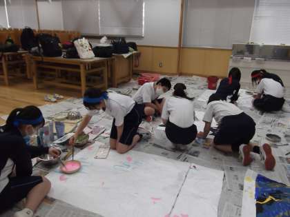 各団の士気を高める、デコレーション製作が行われています。体育大会を、そして大中生を盛り上げてくれるとても大事な位置付けとなります。時間を大切にして、仲間と協力して作業を進めています。