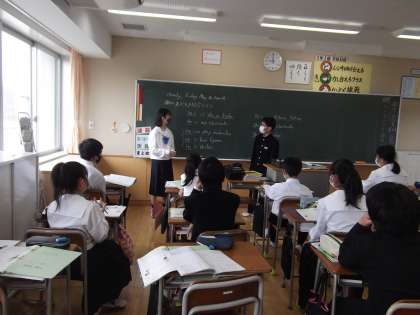 HeやSheを使って、友だちを英語で紹介しています。板書や教科書を使わず、暗唱して紹介できるペアもあります。1年生、がんばっています。