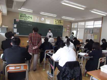 因数分解について学習しています。牧田先生が中心となって授業が進められていますが、T2や教育支援の先生もおり、3人体制できめ細やかな授業が展開されています。